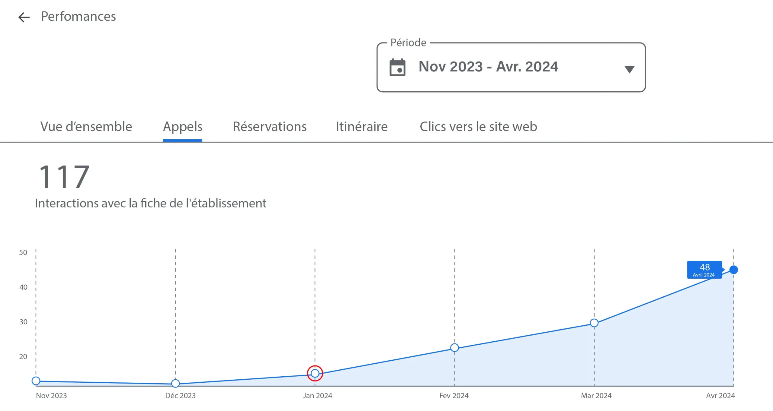 48 appels mensuels via Google Business Profile.